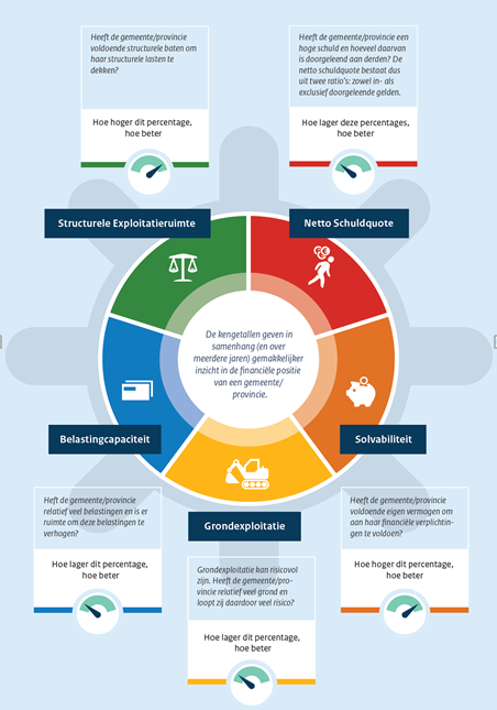 Als gemeente zijn we verplicht de onderstaande vijf financiële kengetallen op te nemen in de jaarrekening en begroting. Deze kengetallen geven samen een beeld van de financiële ontwikkelingen in de gemeente. De samenhang tussen de kengetallen hierin is belangrijk. De kengetallen en beoordeling zijn bedoeld om de financiële positie inzichtelijk te maken en kunnen daarnaast gebruikt worden als vergelijking tussen gemeenten.